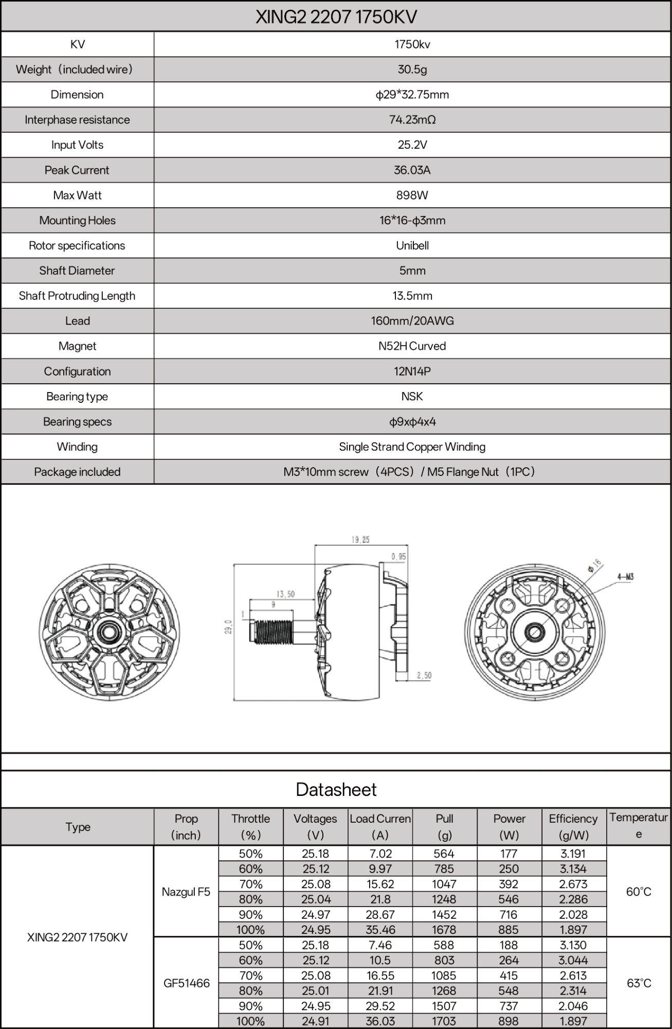 Max Watt: 898W(1750KV) / 706.9W(2750KV) / 1166.4W(2750KV)