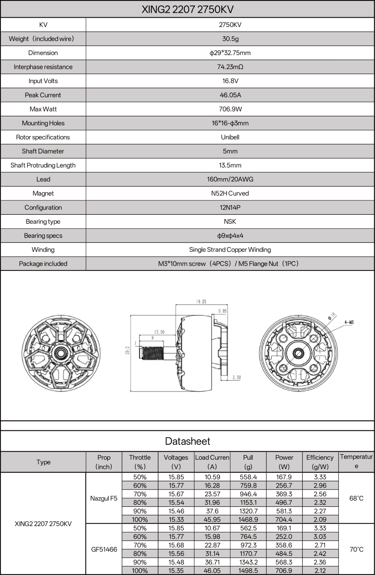 Peak Current: 36.03A(1750KV)/ 46.05A (2750KV)/ 49.53A(2750KV)