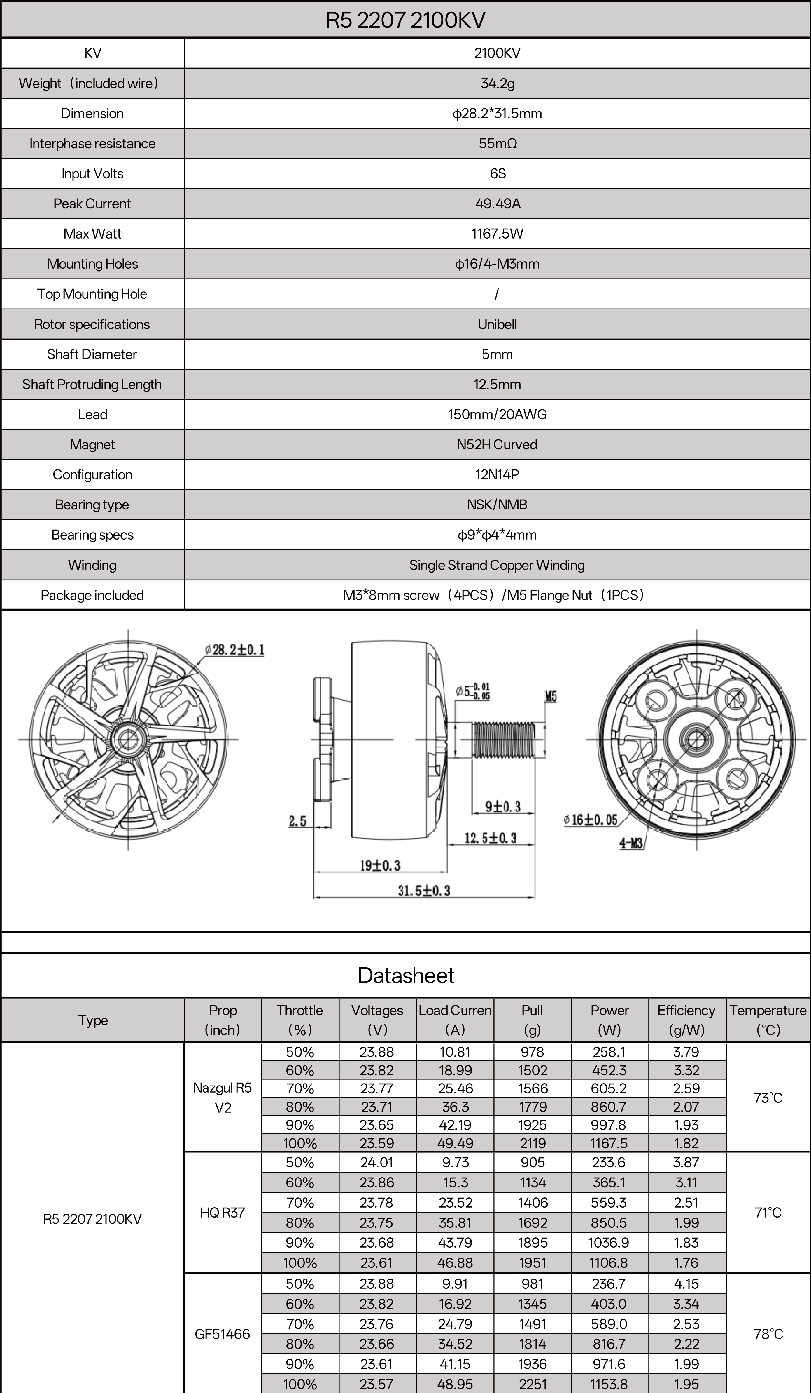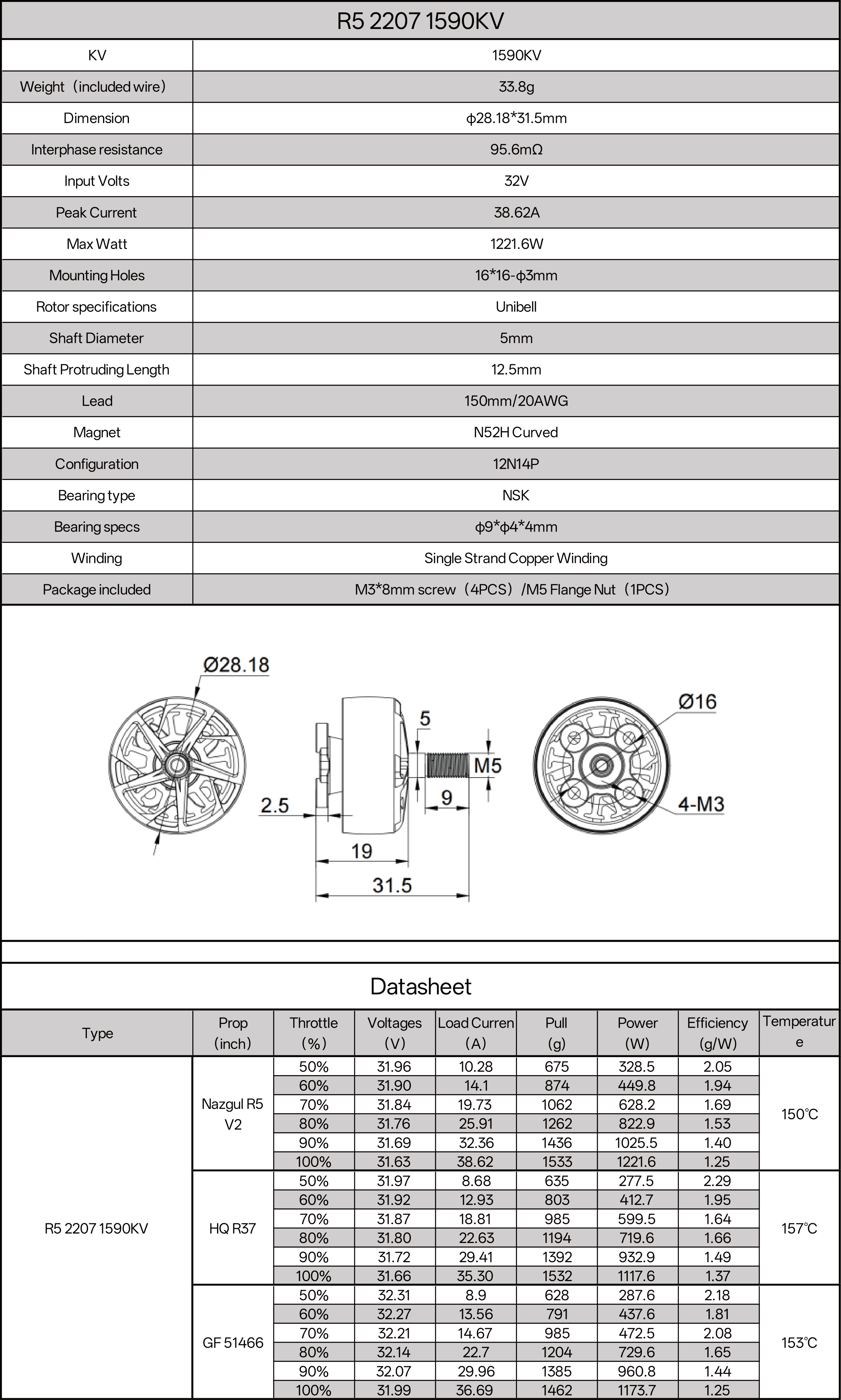 Dimension: 28.18*31.5mm(1590KV) / 28.2*31.5mm (2050KV/2100KV)