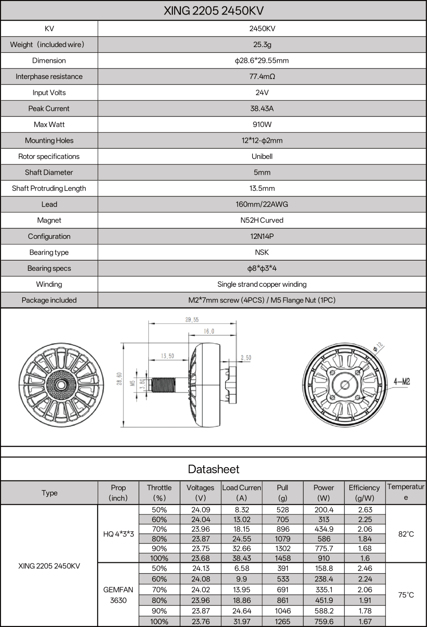 Shaft Diameter: 4mm(3200KV)/5mm(2300KV/2450KV)