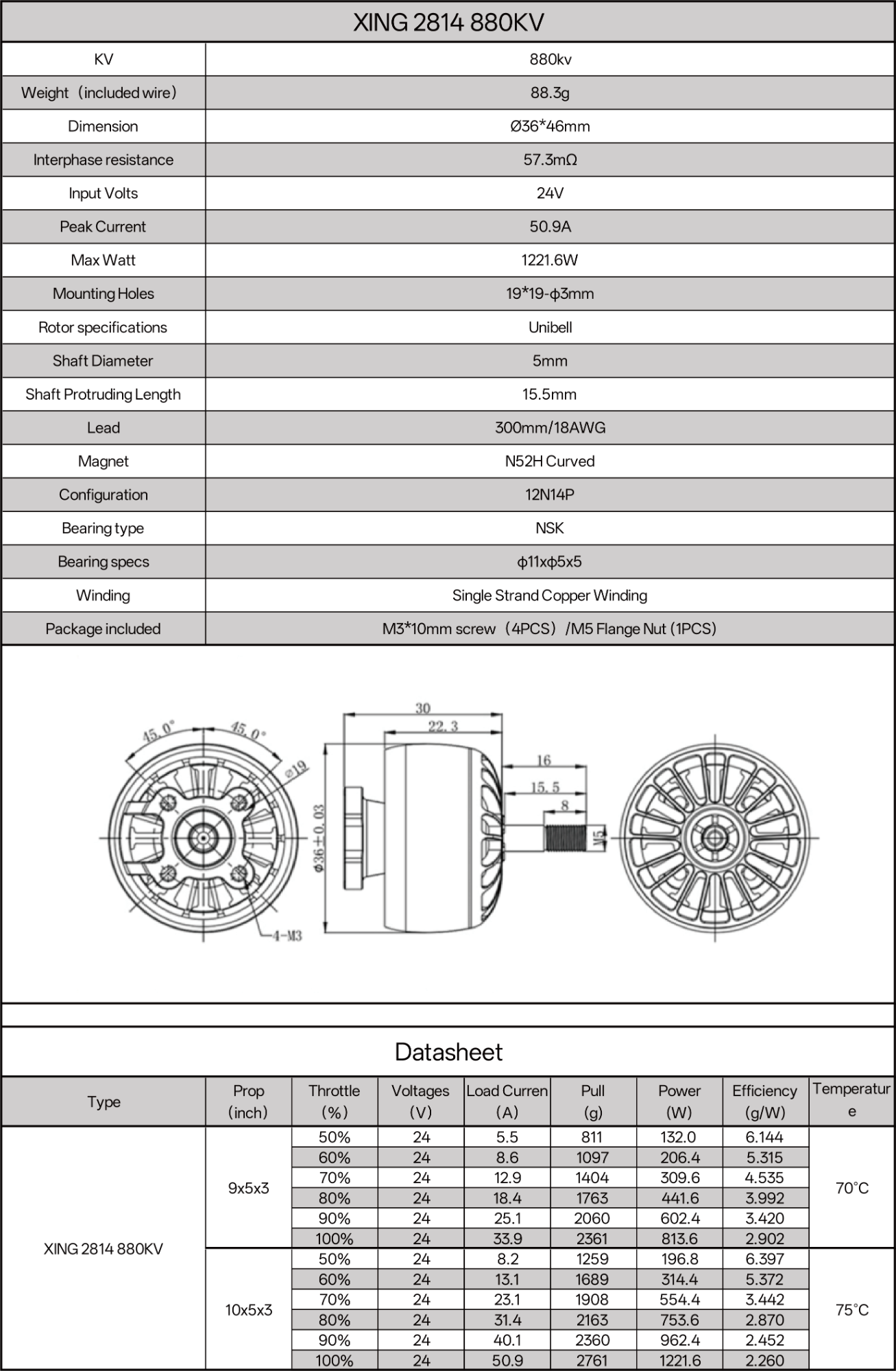 The Motor XING 2814 designed for bigger quads like 9-10 inch quad frames, which is with better efficiency in this range frames. The XING 2814 features adopt Japan NSK bearing, N52H arc magnets. It offers incredible thrust number, highly responsive and extremely smooth flight characteristics. The bigger stator size of 2814 allows it to provide instant power to save you from those crazy mountain dives last minute. It's a great motor if you're building bigger drones like 9 inch or 10 inch.